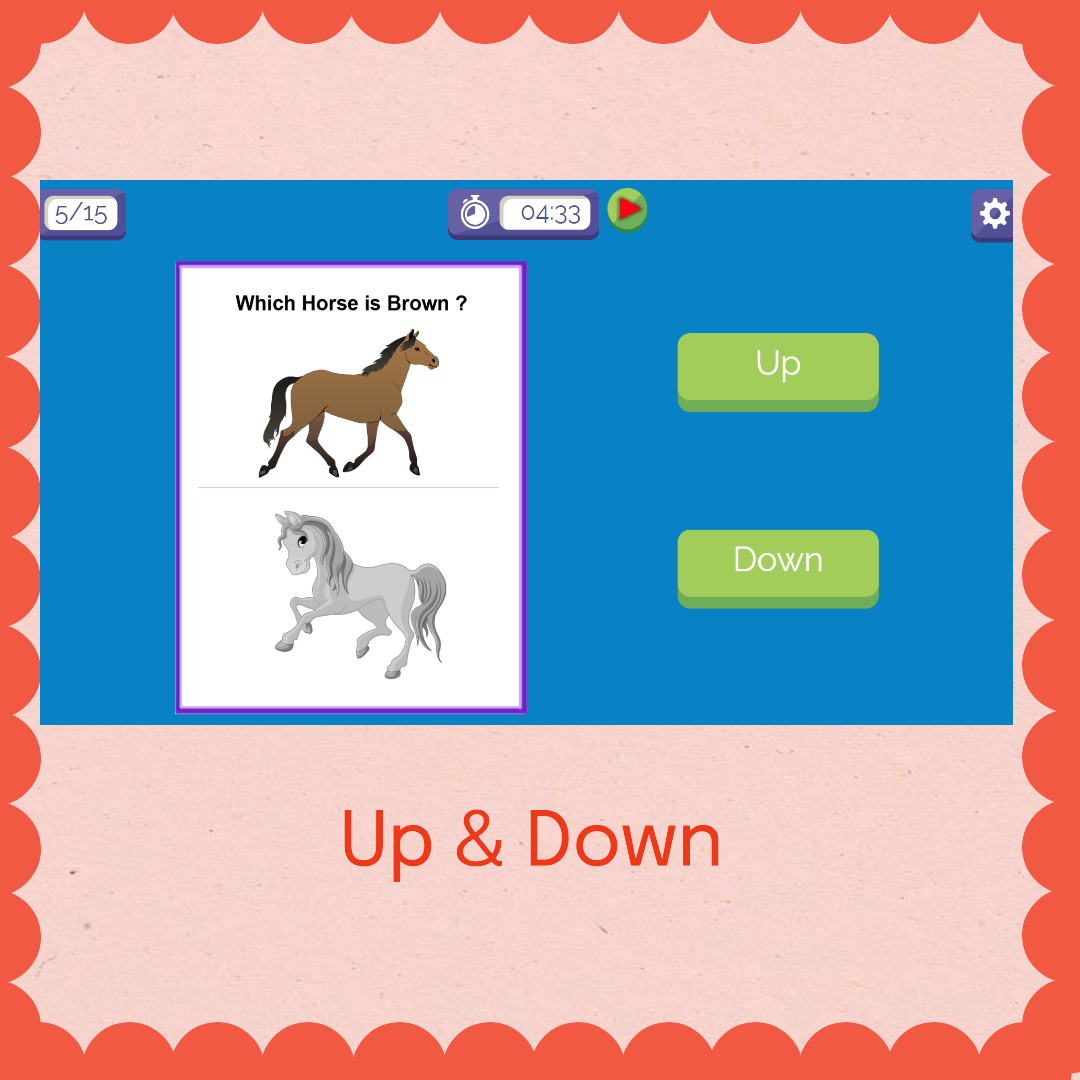 Up / Down: This Task Child Will Have To Answer Objects Are Up/Down From Various Category Like Bigger , Smaller , Colour , Taller , Etc.